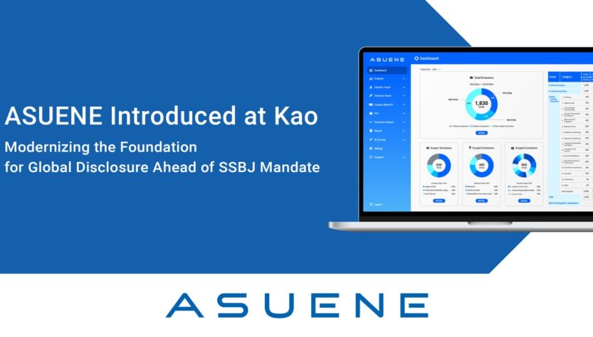 ASUENE will support Kao’s initial use of ASUENE as a foundation for SSBJ compliance, and work closely with the company to ensure effective global adoption. The platform will also support supplier data assessment, advanced CFP calculations, integrated ESG data management, and compliance with international disclosure frameworks including CDP and CSRD, strengthening decarbonization management and data governance.